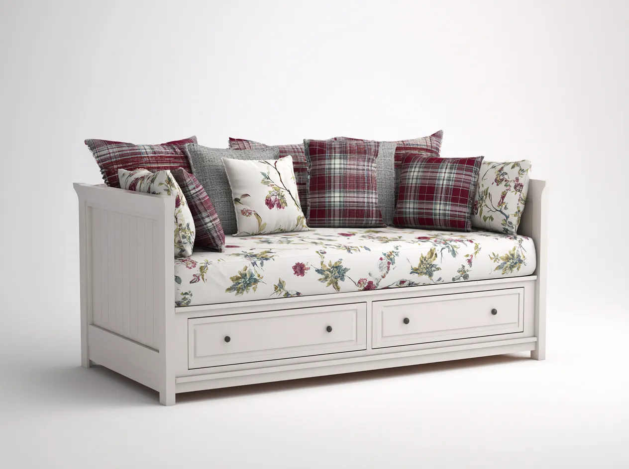 Schlafsofa - Holz - 206 x 93 x 88 cm - Weiß - Klassischer Landhausstil mit Schubladen