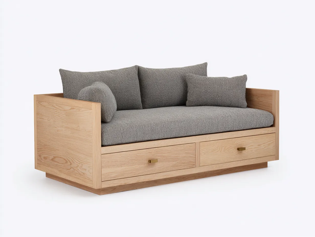 Schlafsofa - Holz-Stoff - 205 x 90 x 85 cm - Eiche Natur-Grau - Modernes Design mit Stauraumschubladen