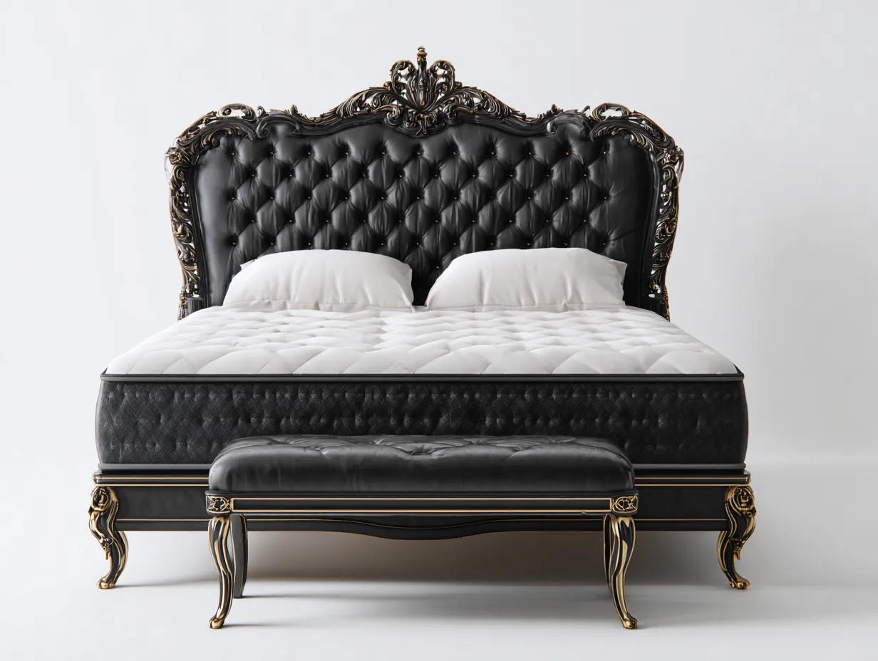 Doppelbett - Kunstleder-Holz-Metall - 220 x 200 x 135 cm - Schwarz - Klassischer Stil