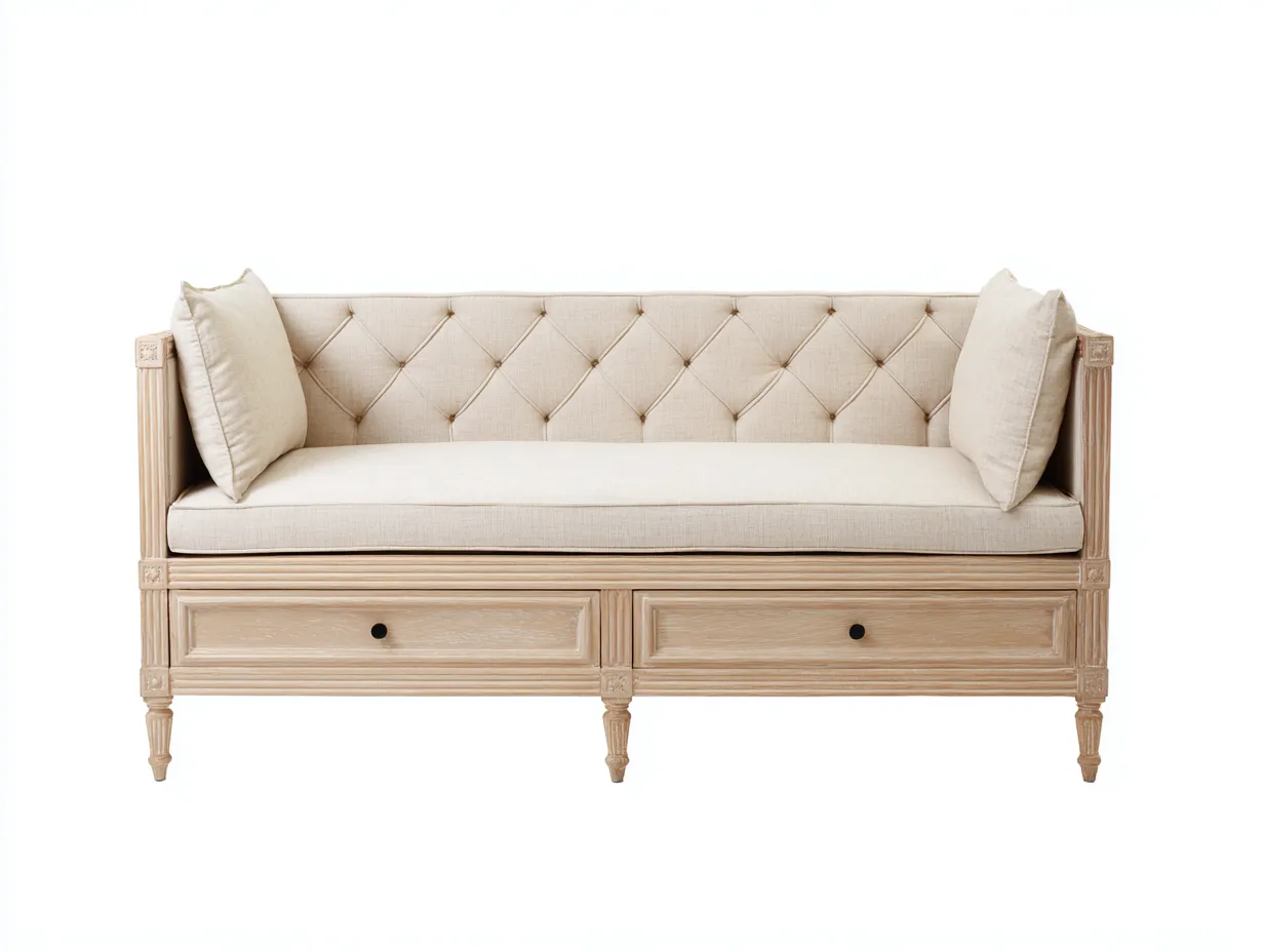 Schlafsofa - Holz-Stoff - 212 x 95 x 91 cm - Naturholz-Beige - Französischer Landhausstil mit Stauraumschubladen